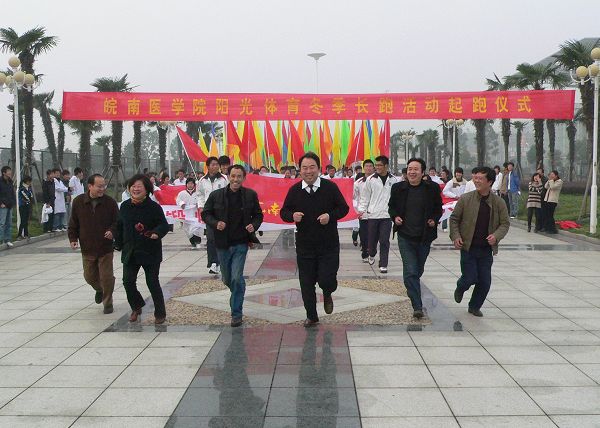 11月26日下午,我校阳光体育冬季长跑活动启动仪式圆满举行。李朝品副院长亲自到场并和各系领导在队伍前面带领同学们一起长跑,参加长跑仪式的同学有1千余人。为配合全国亿万学生阳光体育冬季长跑活动,根据省教育厅、省体育局、团省委“关于开展第三届全国亿万学生阳光体育冬季长跑安徽省活动的通知”要求,在章尧院长、李朝品副院长的具体指导下,体育教研室和校团委精心安排、周密组织,保卫处及各系领导、辅导员协调配合,确保了启动仪式顺利举行。阳光体育冬季长跑活动启动仪式举行后,必将掀起我校学生冬季长跑及开展群体活动的新高潮。