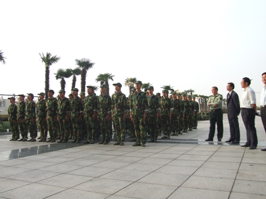 10月19日下午,校党委副书记郑勇超、学生处处长李军华亲临09级新生军训现场,亲切看望了参训学员及部队教官,极大地鼓舞了学生和官兵们的士气。