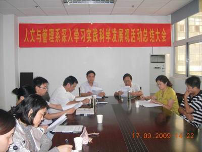 9月17日下午,人文与管理系深入学习实践科学发展观活动总结大会在系部楼二楼会议室举行。人文与管理系教工党员和部分学生党员参加大会,会议由人文与管理系副主任刘华主持。纪委书记李刚出席会议并作讲话。