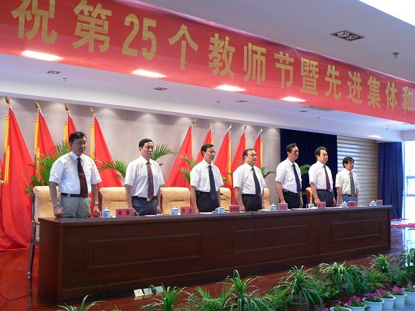 在雄壮的国歌声中,第二十五个教师节暨表彰大会隆重召开