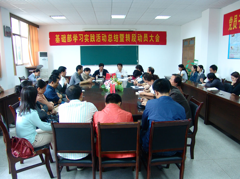 5月25下午,基础部深入学习实践科学发展观活动第一阶段总结暨转段动员大会在基础部会议室隆重举行。校党委副书记、院长宋建国莅临会议并作指导讲话,基础部全体党员参加大会。会议由基础部党总支副书记韦丽主持。