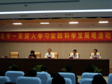 5月19日下午,医学一系在校图书馆三楼报告厅召开了学习实践科学发展观活动学习调研阶段总结暨分析检查阶段动员大会。校党委书记卞国忠莅临指导,组织部长周强、宣传部副部长方国庆出席会议,全系教职工党员、学生党员、发展对象及部分入党积极分子共400余人参加了本次会议。大会由系党总支组织委员韩军主持。