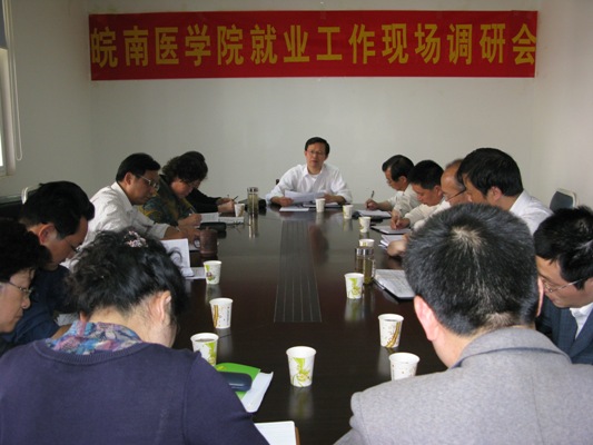 郑勇超副书记指出,学习调研是学习实践科学发展观活动的基础。调研活动要紧紧围绕“为皖医科学发展当先锋、为高等教育强省做贡献”主题,紧密结合“培养什么人,怎样培养人”、“办什么样的大学,怎样办好大学”这两个根本性问题,着重在明确办学思路、优化专业设置、提高办学质量、完善体制机制、建设和谐校园等方面深入开展调研,找准影响和制约学校发展的突出问题,认真思考如何推动学校科学发展,并提出解决问题的对策和措施,为切实解决问题的对策和建立健全推动科学发展的长效机制打下坚实基础。他说,我们针对就业工作进行调研,目的是找出就业工作中存在的问题和困难。他强调,经过大家的努力,我校毕业生就业连续五年达到95%。2008年,被省教育厅授予“安徽省高校就业先进集体”荣誉称号,成绩只能代表过去。今天我们要结合学校就业工作今天和未来几年进行调研、讨论。随着毕业生人数的逐年增加以及专业设置的增多,就业形势越发严峻。我们要早做谋划、早做准备,把工作做在前面。毕业生就业工作是一项重要民生工程,关系到社会、学校的稳定,关系到学校持续发展。希望大家建言献策,使我校就业工作又好又快地发展。