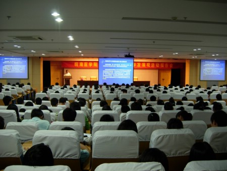 卞国忠书记的辅导报告不仅内容详实,深入浅出,而且联系实际,图文并茂。报告分为三个部分:“进一步提高对学习实践活动重大意义的认识”、“以学习实践活动为契机,进一步提高工作水平”及“对医学一系师生提出的几点希望”。他首先介绍了党中央部署学习实践活动的背景及我校学习实践活动的现状。指出,深入学习实践科学发展观是在深刻变化的国际环境中推动我国发展的迫切需要;是落实实现全面建设小康社会奋斗目标新要求的迫切需要;是以改革创新精神全面推进党的建设新的伟大工程的迫切需要。领导干部要带头学,要真学,真懂,真用。我校学习实践活动目前开局良好,大家要在深刻理解校学习实践活动总体目标“明确发展思路,解决突出问题,创新体制机制,促进科学发展”的基础上,进一步增强推动科学发展的自觉性与坚定性,进一步提高教育教学质量,扎实有效地开展学习实践活动。