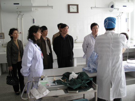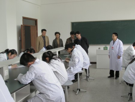 4月25日上午7点30分,医学一系毕业考试改革工作小组成员及全体考官早早来到诊断学、手术学实验室,大家各就各位,各司其职。8时,临床技能考核准时开始。第一批参加考核的2004级毕业生进入了考场。