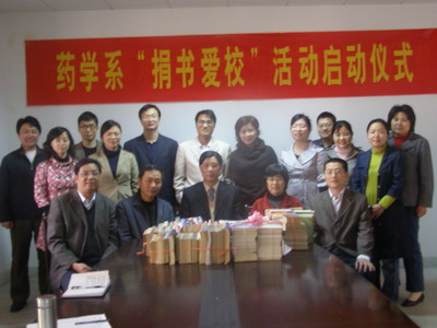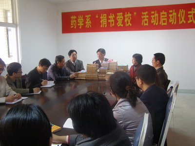 4月16日下午,药学系在系部楼三楼会议室举行“捐书爱校”活动启动仪式,党委副书记、院长宋建国、图书馆副馆长戴达宁和药学系主任吴少云、系总支书记钱向红、系副主任刘晓平出席了仪式。