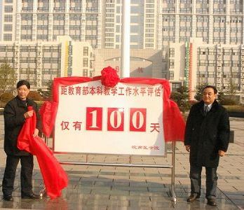 2008年2月28日,校领导在南大门广场隆重举行距教育部本科教学工作水平评估100天倒计时牌揭牌仪式