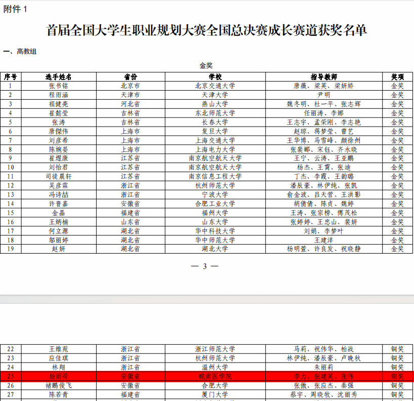 近日,教育部发布《教育部关于公布首届全国大学 生职业规划大赛全国总决赛获奖名单的通知》,我校学子获得成长赛道高教组铜奖,取得在该项赛事省决赛一等奖后的又一突破。