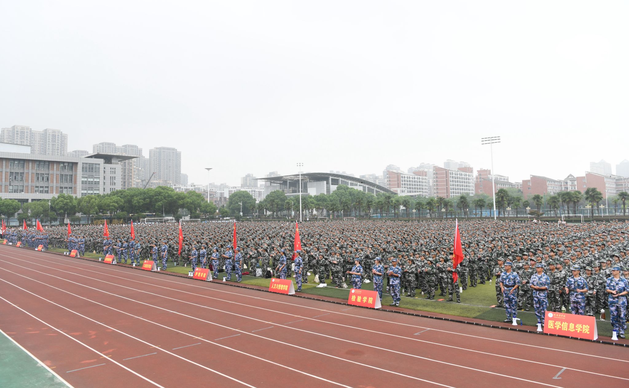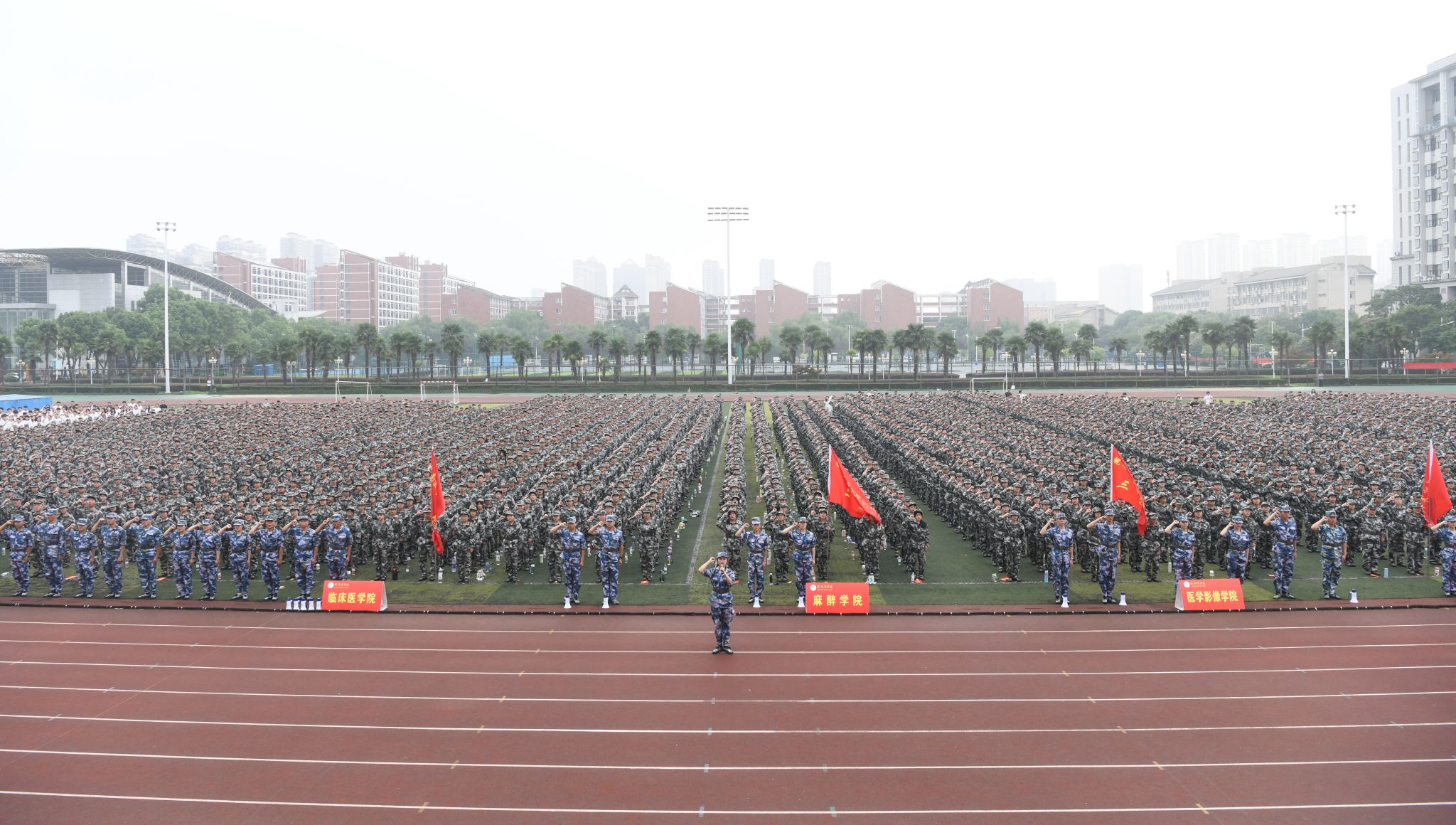 学校相关职能部门、各学院负责人,全体承训教官,各学院新生辅导员和2024级全体新生参加大会。(何丽/文 侯东晓、吴小婉/摄)