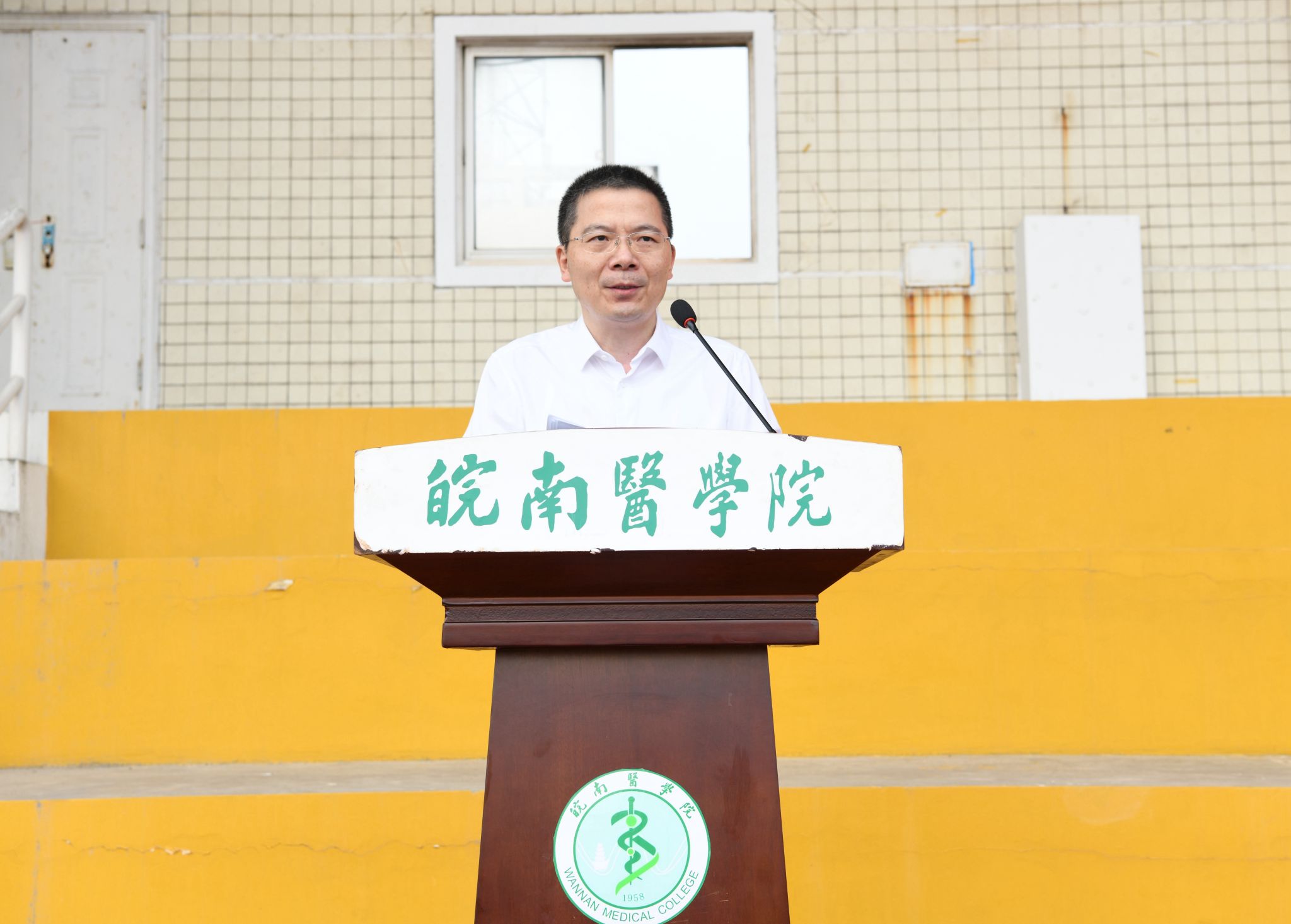 党委副书记、院长姚应水发表了题为《依靠“学”之大 成就大学之大》的讲话,他从学校历史出发,介绍皖医从无到有、由弱到强,不断发展壮大的奋斗过程,他指出,学校正处于更名大学的最关键节点,站在新的起跑线上,同学们要珍惜好时光,走好大学路,与学校并肩作战,共同创造美好的明天。