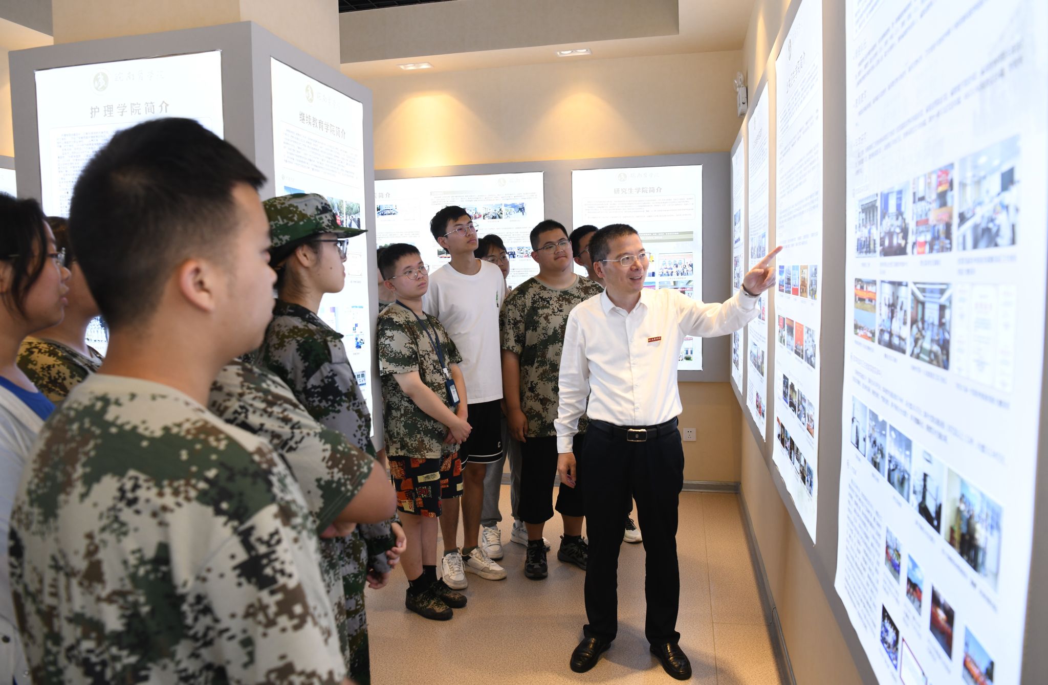 9月30日,纪委书记、监察专员王保中在校史馆为2024级智能医学工程专业新生带来富有思想性、理论性和亲和力的校史实践课。他结合丰富的历史资料和实物展示,向新生讲授了学校的发展历程、办学成果;同时,结合医学信息学院的创建历程、专业背景和发展前景,他勉励新生们能够提高实践能力,关注行业动态和技术前沿,培养跨学科思维和创新能力,为未来职业发展打下坚实的基础。