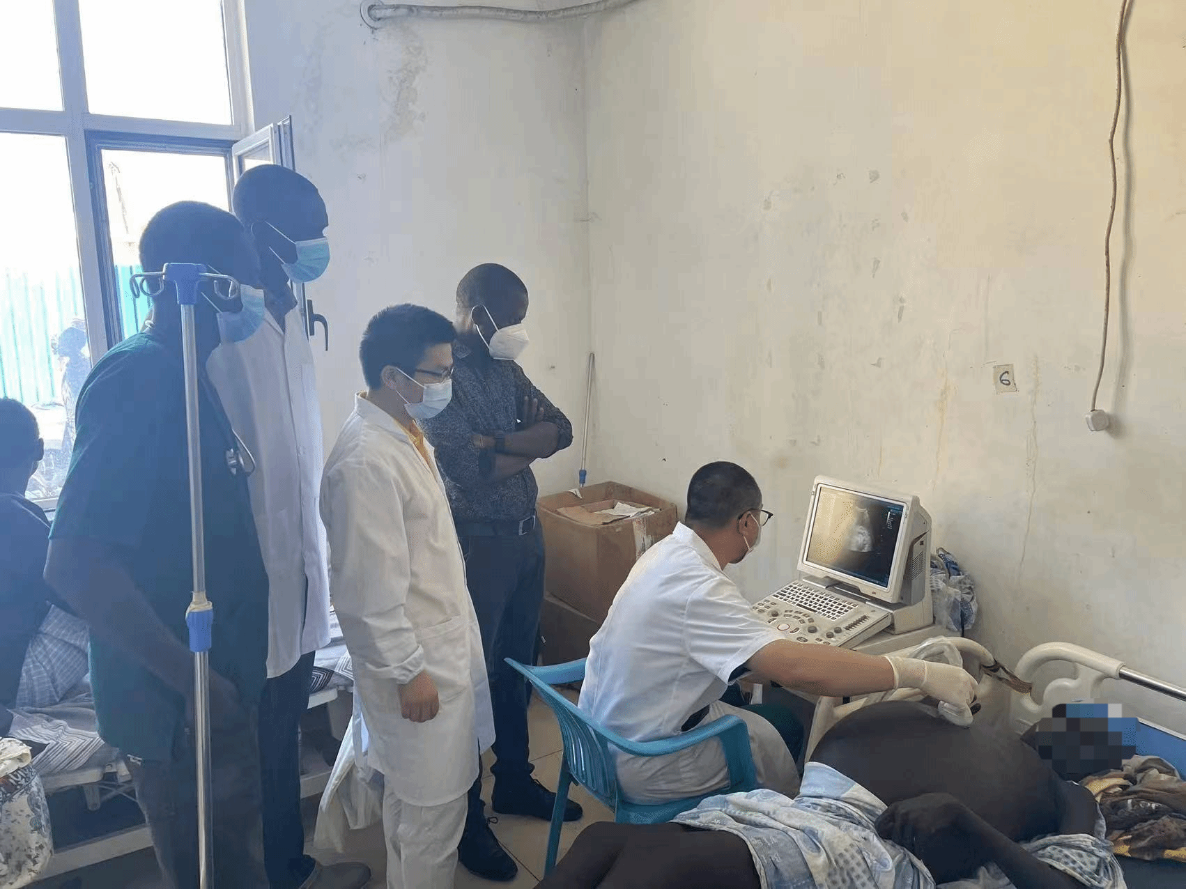 近日,中国(安徽)第十二批援南苏丹医疗队利用多学科联合诊疗优势,在朱巴教学医院开展首例B超引导下腹腔穿刺+引流术,诊治一例肝硬化并发大量腹水患者,取得良好临床疗效。