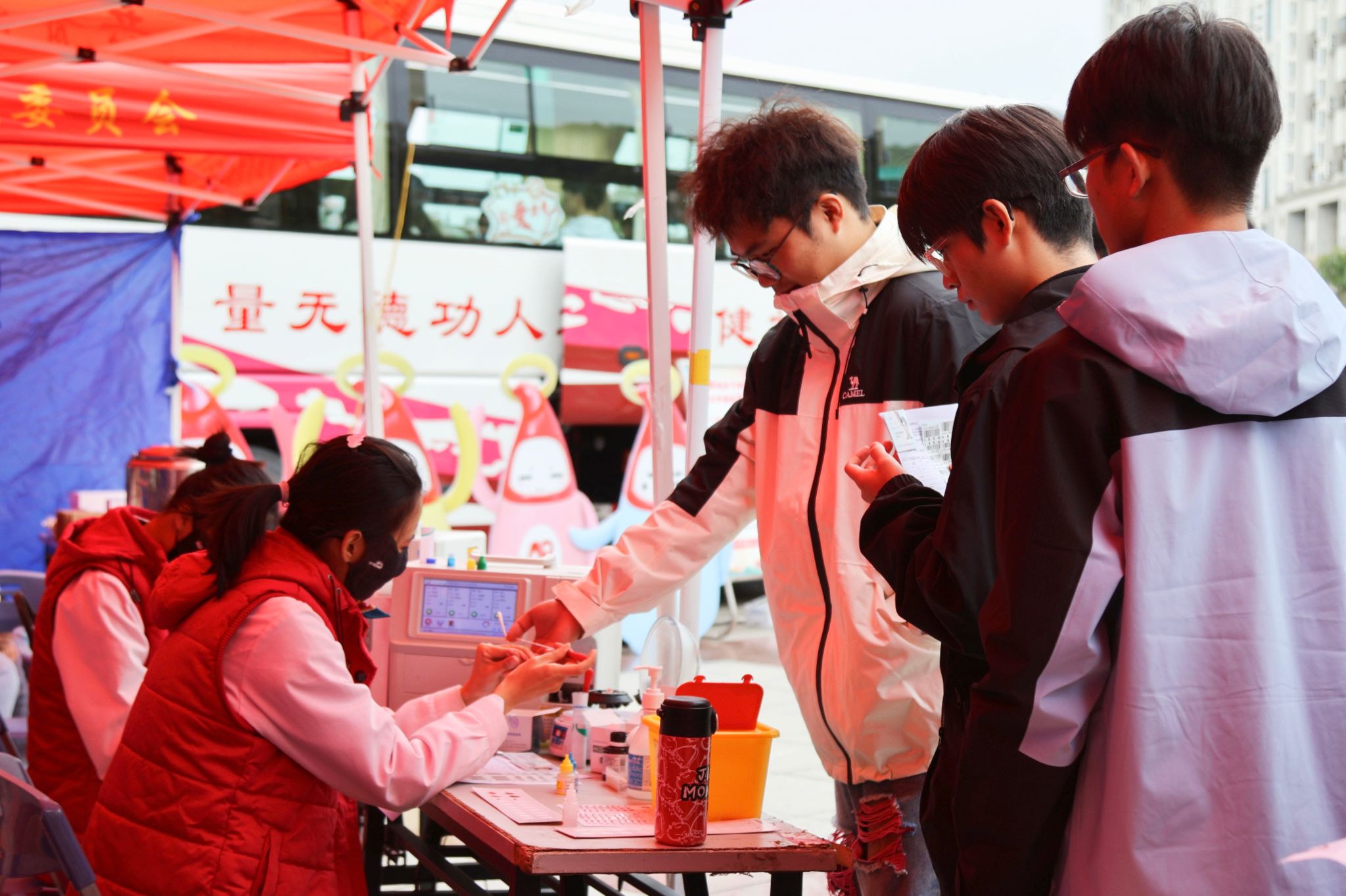 活动现场,我校师生在志愿者的引导下,依次登记个人信息,完成征询、体检、初筛等环节后,进入献血车接受静脉采血。献血车内,医护人员熟练操作,志愿者们则递上热饮,陪伴交谈,帮助同学们缓解紧张情绪。尽管天气微寒,但师生们的献血热情丝毫未减,纷纷挽起袖子,伸出手臂,将关怀与希望汇聚成汩汩热血。在献血队伍中,既有多次献血的“献血达人”,也有初次尝试的“新鲜血液”,他们用实际行动诠释了情在血液中传递,爱在生命中延续。