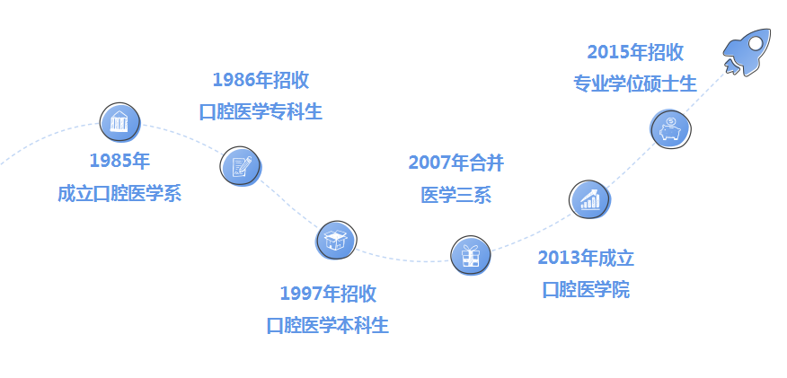 学院口腔医学专业设立于1985年,是学校传统优势专业;1986年开始招收第一届口腔医学专业三年制专科生;1997年招收第一届口腔医学专业五年制本科生;2008年获批安徽省特色专业建设点;2012年获批安徽省“卓越人才教育培养计划”;2014年获批安徽省“专业综合改革试点”,同年获批口腔医学专业硕士学位授权点;2015年招收口腔医学专业硕士研究生;2019年获批安徽省一流本科专业建设点;2022年获批安徽省传统专业改造提升建设项目。四十载的岁月培养了数千名口腔医学专业人才,为安徽地区乃至全国的口腔医疗事业做出了重要贡献。