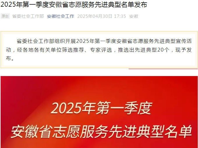 我校“遗路有爱”项目获2025年第一季度安徽省志愿服务先进典型