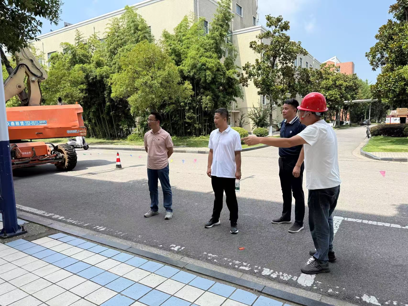 田磊强调,今年学校围绕住宿条件改善、校园交通设施升级等重点领域精准发力,集中推进学生宿舍维修改造、校园道路硬化提质、北门及广场环境提升等民生工程,这些工程既是师生高度关注的焦点,更是关乎学校内涵发展的重要举措,意义重大。针对暑假期间施工工作,田磊提出具体要求,一是要强化全程指导监督。持续压实工程质量监管责任和安全生产管理职责,项目负责人要常态化深入施工一线,做到问题早发现、早处置,确保现场问题即时解决。二是要筑牢安全生产防线。要优化施工流程,合理调配施工力量,切实增强安全防范意识,坚决杜绝安全事故发生;要全面做好防暑降温和落实应急处置措施,设置防暑降温点,全力保障施工人员生命安全。三是要严格把控时间节点。围绕项目攻坚目标细化施工计划,实行工期倒排管理,加大人员投入与机械配置力度,为新学期顺利开学提供坚实的条件保障。四是要坚守环保施工底线。尤其要注重宿舍改造的细节打磨,邀请师生代表参与家具环保检测等关键环节,以贴心细致的“小举动”传递育人关怀的“大温暖”,持续提升师生的获得感与幸福感。