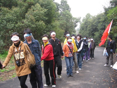 互帮互助――“盲人”方阵 此次综合素质拓展训练的所有项目都以体能活动为引导,引发同学们的认知活动、情感活动、意志活动和交往活动,进而提高同学们的综合素质,为以后同学们更好地学习、生活创造了有利条件。