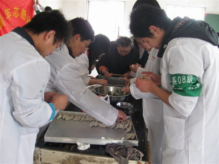 为让老人们感受到家的温暖,表达同学们的一片心意,大家集体凑钱为老人们送了橘子、香蕉、糖果等,还准备了饺皮、饺馅,和老人们一起包饺子。考虑到老人们的身体健康问题,同学们还帮老人们量血压,告诉他们平时应如何保养身体。包完了饺子,大家还为老人们表演节目、打扫房间,虽然同学们的表演并不专业,但真情的演出让老人们很感动。看到老人们一张张灿烂的笑脸,同学们感到再苦再累也值得。芜湖市生活传真节目的记者对同学们的活动进行了全程采访。