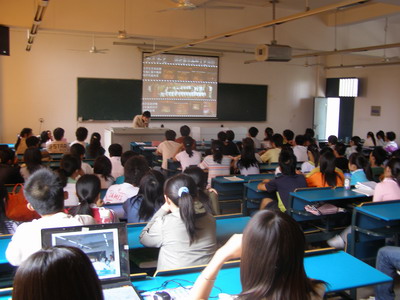 在汇报会上,药学系40个在校行政班级的代表,以幻灯片的形式,分别在规定的时间里汇报了本学期班级各方面建设的情况。同学们主要从学习风气、班级凝聚力、对本科教学评估的认识与行动三个方面,汇报了本班的课堂到课率、早锻炼出勤率、校徽佩带率、宿舍文明和文化建设、绿地养护等情况。