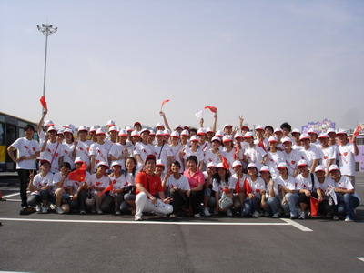医学一系迎奥运火炬传递第2队学生与老师合影 |