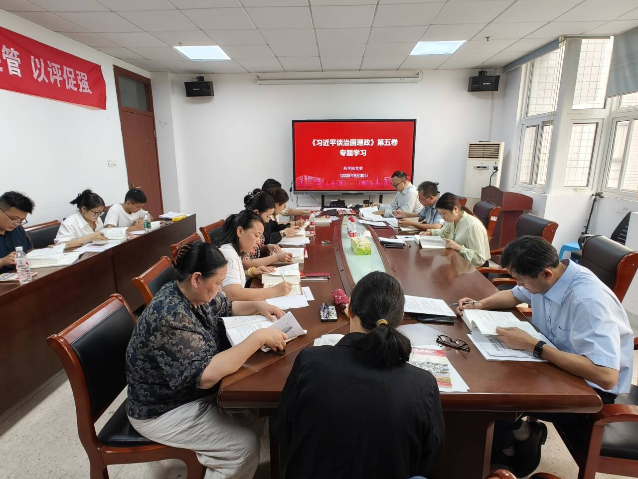 为深入学习贯彻习近平新时代中国特色社会主义思想,9月30日,药学院党委理论学习中心组开展专题学习会,集中学习《习近平谈治国理政》第五卷部分内容,并围绕相关主题进行研讨。学院党委委员、党支部书记参会。
