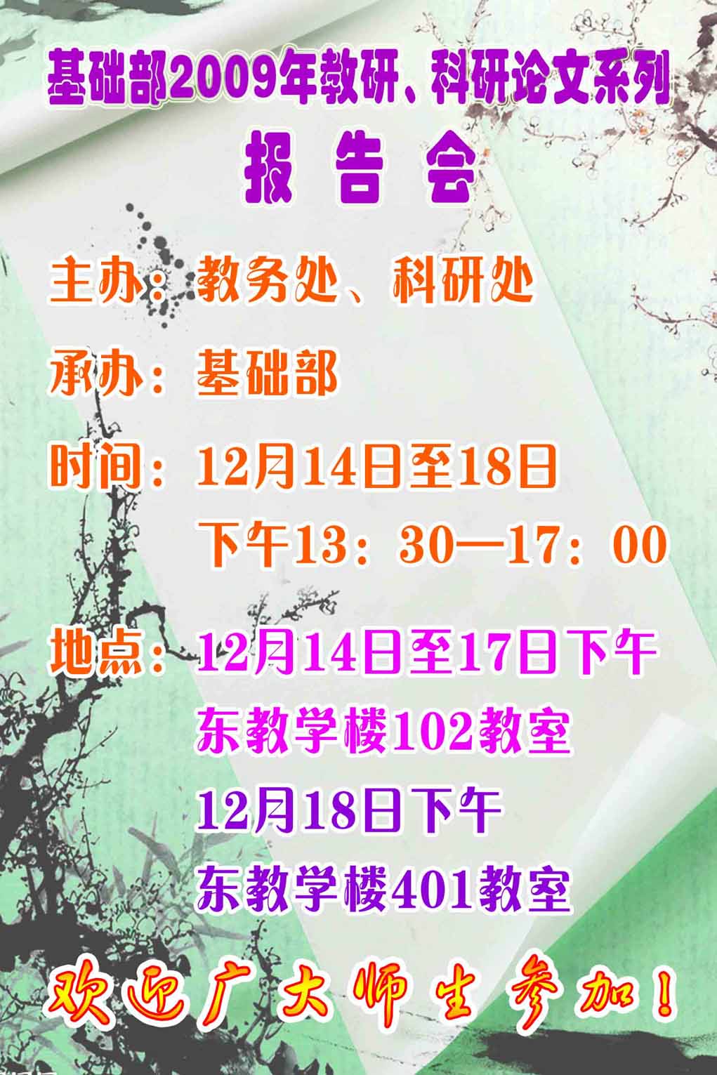 关于基础部开展2009年教研、科研论文系列报告会的通知