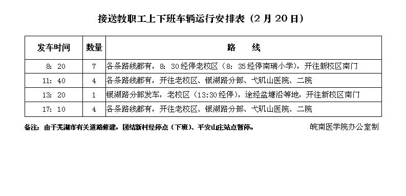 接送教职工车辆安排(2月20日)
