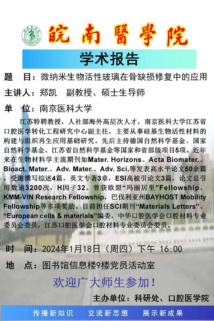 学术报告:微纳米生物活性玻璃在骨缺损修复中的应用