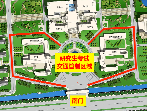 2024年全国硕士研究生入学考试将于2023年12月23日-25日举行。2023年12月23日-24日,我校滨江校区1号和2号教学楼作为研究生考试考场。为保证考试顺利有序,经研究决定,届时将对滨江校区东门和南门进行临时管控。现将有关事宜通知如下: